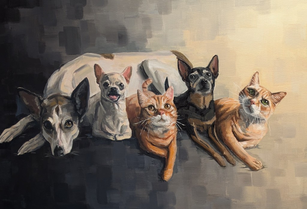 Find inspiration among my already existing artwork – human and pet portraits alike…